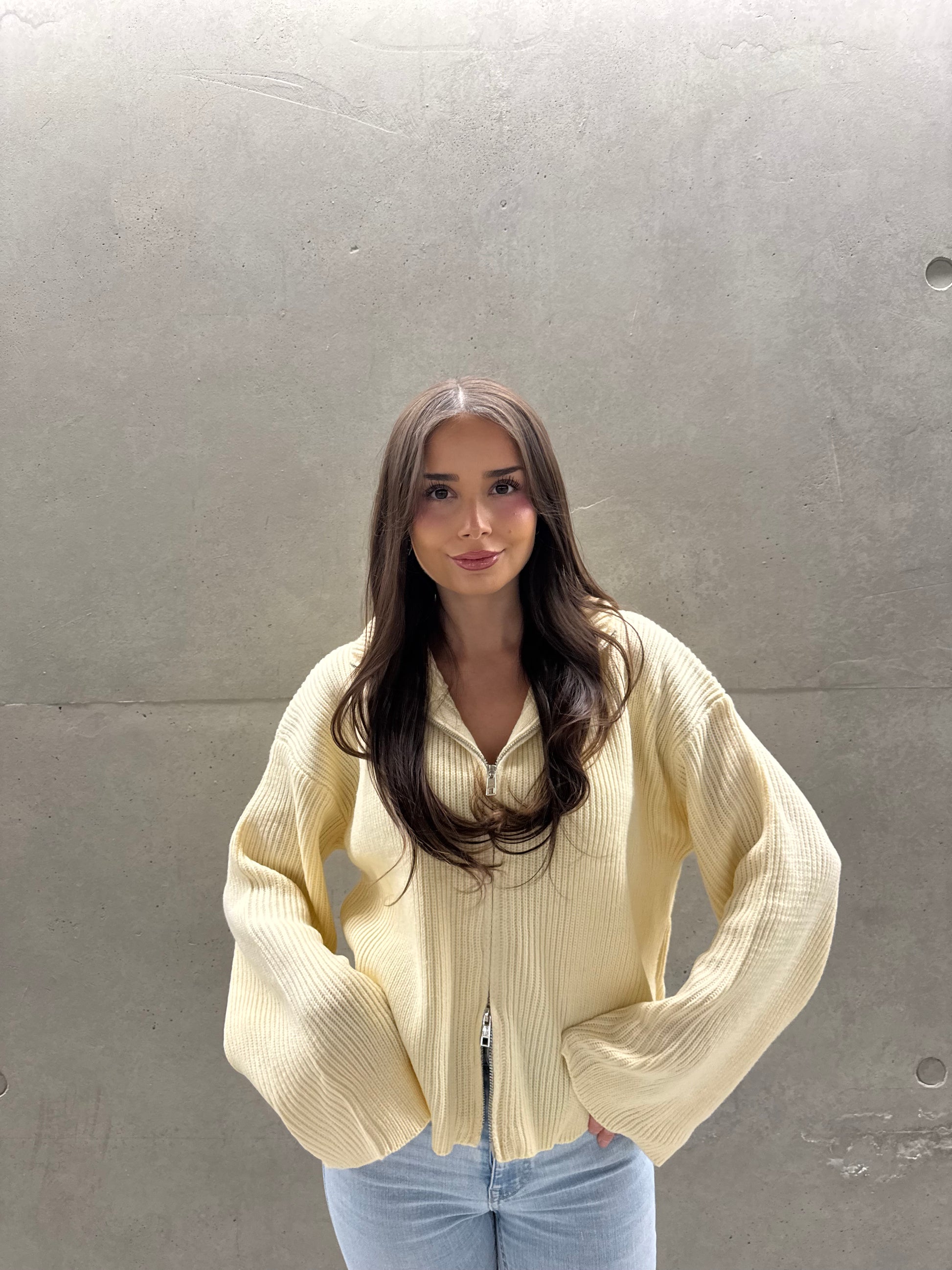 Ribbed Zip Cardi - Gelb