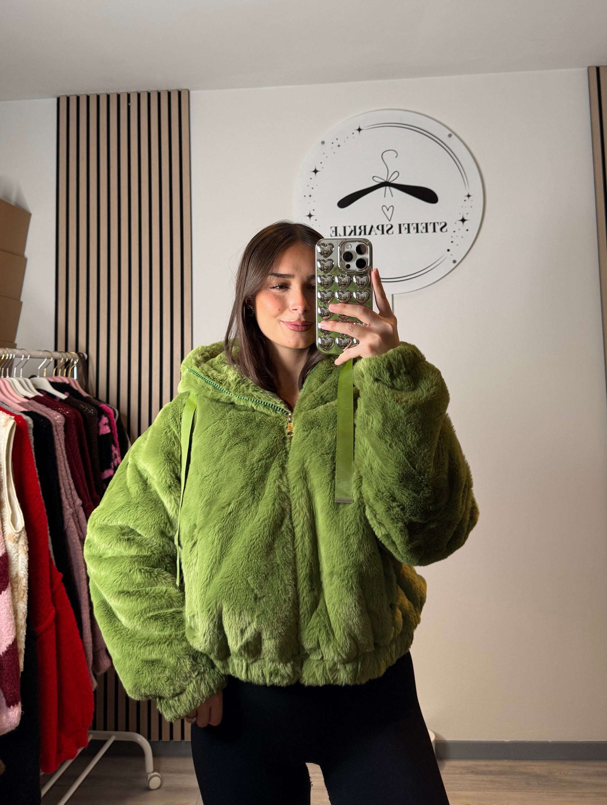 Teddy Jacke mit Kapuze - Grün